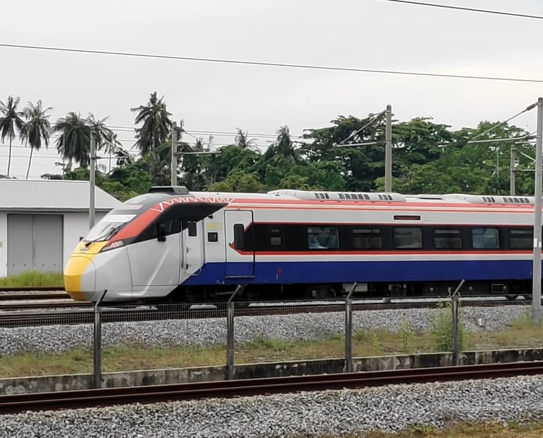 The trial was conducted with a train hauled by a Thai locomotive along the Padang Besar-Surat Thani route, with the train returning on September 23. Key technical aspects such as the clearance between the train and platforms, wheel spacing, coach height, and braking systems were tested to ensure compliance with safety standards. This is in preparation for starting of regular service